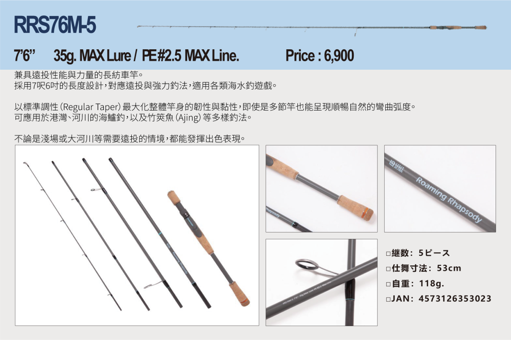 Roaming Rhapsody 打破既有釣魚產業中,依海水、淡水、湖泊、路亞種類、目標魚種等被細分的框架,打造一條「Borderless(無界)」的產品線,讓各種釣魚方式都能自由體驗與提案。